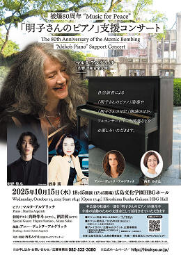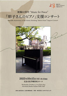 10月15日(水) 18:45〜 広島/広島文化学園HBGホール 「明子さんのピアノ 支援コンサート」 明子さんのピアノについては、こちらをご覧下さい。