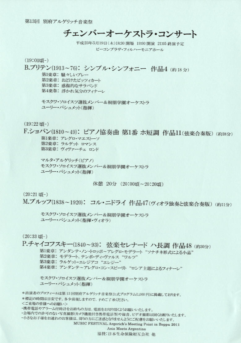 The SCHEDULE that Argerich came on the stage. Theme of this festival: "Asia meets Argentina"